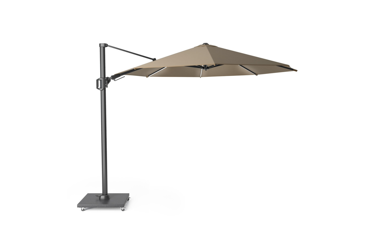Забезпечує тінь протягом усього дня без необхідності переміщувати парасольку завдяки нахилу T² назад та вбік, а також поворотній на 360° основі. Важка поліефірна тканина 300 г/м² бежево-коричневого кольору залишається естетично привабливою протягом тривалого часу та забезпечує ефективний захист від сонця (до 96% UV).Тканина має водо- та брудовідштовхувальне покриття.